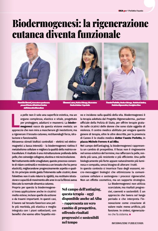 La rivista IDEA, settimanale della provincia di Cuneo, ha dedicato un articolo su Biodermogenesi®, un approccio che non mira a mascherare gli inestetismi, ma a rigenerare il tessuto cutaneo, restituendogli forza, idratazione e funzionalità.